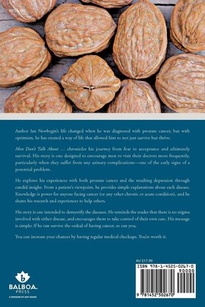 Author Ian Newbegin's life changed when he was diagnosed with prostate cancer, but with optimism, he has created a way of life that allowed him to not just survive but thrive. Men Don't Talk About ... chronicles his journey from fear to acceptance and ultimately survival. His story is one designed to encourage men to visit their doctors more frequently, particularly when they suffer from any urinary complications-one of the early signs of a potential problem. He explores his experiences with both prostate cancer and the resulting depression through candid insight. From a patient's viewpoint, he provides simple explanations about each disease. Knowledge is power for anyone facing cancer (or any other chronic or acute condition), and he shares his research and experiences to help others. His story is one intended to demystify the diseases. He reminds the reader that there is no stigma involved with either disease, and encourages them to take control of their own care. His message is simple: If he can survive the ordeal of having cancer, so can you. You can increase your chances by having regular medical checkups. You're worth it.