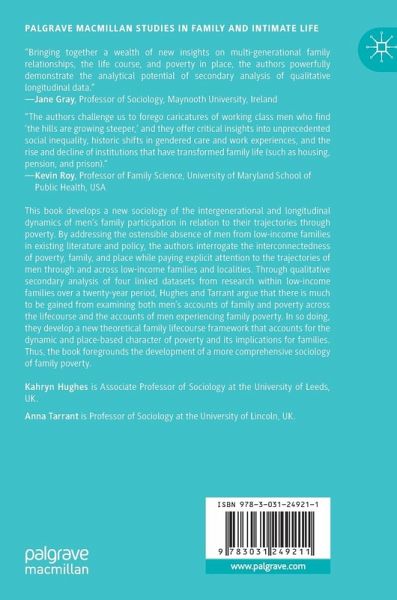 This book develops a new sociology of the intergenerational and longitudinal dynamics of men's family participation in relation to their trajectories through poverty. By addressing the ostensible absence of men from low-income families in existing literature and policy, the authors interrogate the interconnectedness of poverty, family, and place while paying explicit attention to the trajectories of men through and across low-income families and localities. Through qualitative secondary analysis of four linked datasets from research within low-income families over a twenty-year period, Hughes and Tarrant argue that there is much to be gained from examining both men's accounts of family and poverty across the lifecourse and the accounts of men experiencing family poverty. In so doing, they develop a new theoretical family lifecourse framework that accounts for the dynamic and place-based character of poverty and its implication for families. Thus, the book foregrounds the developmentof a more comprehensive sociology of family poverty.