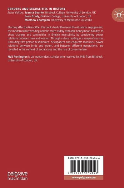 Starting after the Great War, this book charts the rise of the ritualistic engagement, the modern white wedding and the more widely available honeymoon holiday, to show changes and continuities in English masculinity by considering power relations between men and women. Through a close reading of a range of sources (including first-person testimonies, newspapers and etiquette manuals), power relations between bride and groom, and between different generations, are revealed in the context of social class and the rise of consumerism.