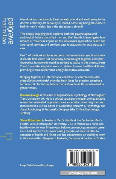 Foreword; K.Hunt.- Acknowledgments.- Notes on Contributors.- Introduction What is the Point of This Book?; B.Gough& S.Robertson.- PART I: CURRENT ISSUES AND DEBATES IN THE FIELD OF MEN'S HEALTH.- Developing a Critical Men's Health Debate in Academic Scholarship; M.Lohan.- A Grand Illusion: Masculinity, 'Passing' and Men's Health; D.Buchbinder.- Men, Public Health and Health Promotion: Towards a Critically Structural and Embodied Understanding; S.Robertson & R.Williams.- Bugging the Cone of Silence With Men's Health Interviews; J.L.Oliffe.- PART II: POPULAR CONCEPTIONS OF MEN'S HEALTH AND WELLBEING.- Men's Negotiations of a 'Legitimate' Self-help Group Identity; S.Seymour-Smith.- Older Men's Health: The Role of Marital Status and Masculinities; K.Davidson& R.Meadows.- Promoting 'Masculinity' Over Health: A Critical Analysis of Men's Health Promotion With Particular Reference to an Obesity Reduction 'Manual'; B.Gough.- The Health Experiences of African-Caribbean and White Working Class Fathers; R.Williams.- PART III: MEN, MASCULINITIES AND ILLNESS.- Pathologizing Fatherhood: The Case of Male Post Natal Depression in Britain; E.Lee.- Prostate Cancer and Masculinities in Australia; A.Broom.- Understanding Masculinities within the Context of Men, Body Image and Eating Disorders; M.Drummond.- The Role of Masculinities in White and South Asian Men's Help-seeking Behaviour for Cardiac Chest Pain; P.Galdas.- Afterword: What Next for Men's Health Research?; S.Robertson& B.Gough.- Index.