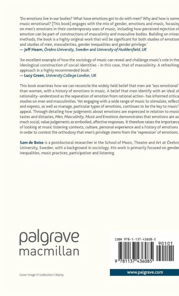 This book looks at the historic and contemporary links between music's connection to emotions and men's supposed discomfort with their own emotional experience. Looking at music tastes and distaste, it demonstrates how a sociological analysis of music and gender can actually lead us to think about emotions and gender inequalities in different ways.