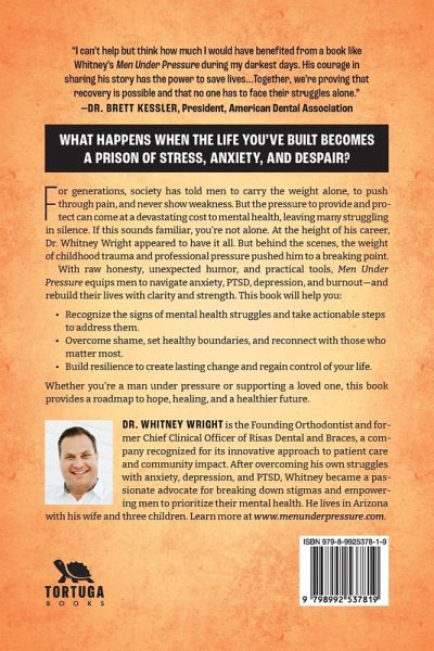 What happens when the life you've built becomes a prison of stress, anxiety, and despair? For generations, society has told men to carry the weight alone, to push through pain, and never show weakness. But the pressure to provide and protect can come at a devastating cost to mental health, leaving many struggling in silence. If this sounds familiar, you're not alone. At the height of his career, Dr. Whitney Wright appeared to have it all. But behind the scenes, the weight of childhood trauma and professional pressure pushed him to a breaking point. With raw honesty, unexpected humor, and practical tools, Men Under Pressure equips men to navigate anxiety, PTSD, depression, and burnout-and rebuild their lives with clarity and strength. This book will help you:Recognize the signs of mental health struggles and take actionable steps to address them. Overcome shame, set healthy boundaries, and reconnect with those who matter most. Break destructive cycles of stress, anxiety, or codependency. Build lasting resilience and regain control of your life You'll also get exclusive access to: +The Men Under Pressure Workbook - a guided companion with prompts to help you reflect and apply what you've learned +A powerful Bonus Chapter not included in the book - revealing a breakthrough moment after 30 years of anxiety. Whether you're a man under pressure or someone who loves one, this is more than just a book-it's a roadmap to hope, healing, and a healthier future. Take the first step. Get your copy of Men Under Pressure and reclaim the strength, balance, and peace you've been missing.