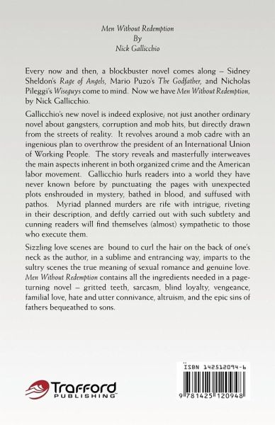 Men Without Redemption contains all the ingredients needed in a page-turning novel - gritted teeth, sarcasm, blind loyalty, vengeance, familial love, hate and utter connivance, altruism and the epic sins of fathers bequeathed to sons.