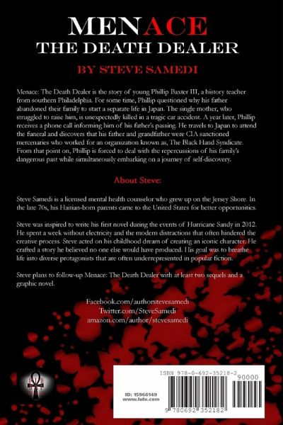Menace: The Death Dealer is the story of young Phillip Baxter III, a history teacher from southern Philadelphia. For some time, Phillip questioned why his father abandoned their family to start a separate life in Japan. The single mother, who struggled to raise him, is unexpectedly killed in a tragic car accident. A year later, Phillip receives a phone call informing him of his father's passing. He travels to Japan to attend the funeral and discovers that his father and grandfather were CIA sanctioned mercenaries who worked for an organization known as, The Black Hand Syndicate. From that point on, Phillip is forced to deal with the repercussions of his family's dangerous past while simultaneously embarking on a journey of self-discovery. With "Menace" I set out to craft a compelling story about an African American that is not a sidekick or a stereotype. There are dormant audiences waiting for creators to present their stories in a respectful manner.-Steve Samedi