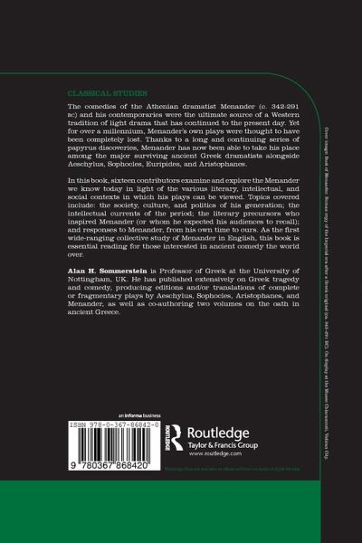 The comedies of the Athenian dramatist Menander (c. 342-291 BC) and his contemporaries were the ultimate source of a Western tradition of light drama that has continued to the present day. Yet for over a millennium, Menander's own plays were thought to have been completely lost. Thanks to a long and continuing series of papyrus discoveries, Menander has now been able to take his place among the major surviving ancient Greek dramatists alongside Aeschylus, Sophocles, Euripides and Aristophanes.