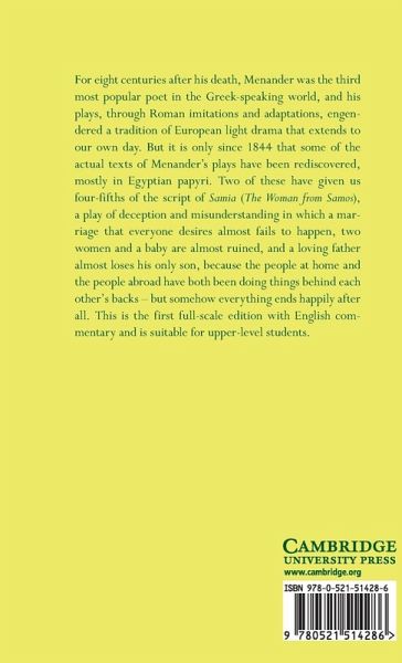For eight centuries after his death Menander was the third most popular poet in the Greek-speaking world, and his plays, through Roman imitations and adaptations, engendered a tradition of European light drama that extends to our own day. But it is only since 1844 that some of the actual texts of Menander's plays have been rediscovered, mostly in Egyptian papyri. Two of these have given us four-fifths of the script of Samia (The Woman from Samos), a play of deception and misunderstanding in which a marriage that everyone desires almost fails to happen, two women and a baby are almost ruined, and a loving father almost loses his only son, because the people at home and the people abroad have both been doing things behind each other's backs - but somehow everything ends happily after all. This is the first full-scale edition with English commentary and is suitable for upper-level students.