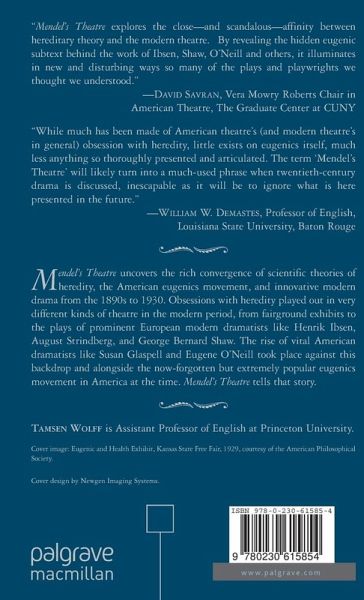 "While much has been made of American theatre's (and modern theatre's in general) obsession with heredity, little exists on eugenics itself, much less anything so thoroughly presented and articulated. The term Mendel's Theatre will likely turn into a much-used phrase when twentieth-century drama is discussed, inescapable as it will be to ignore what is here presented in the future." - William W. Demastes, Professor of English, Louisiana State University, Baton Rouge