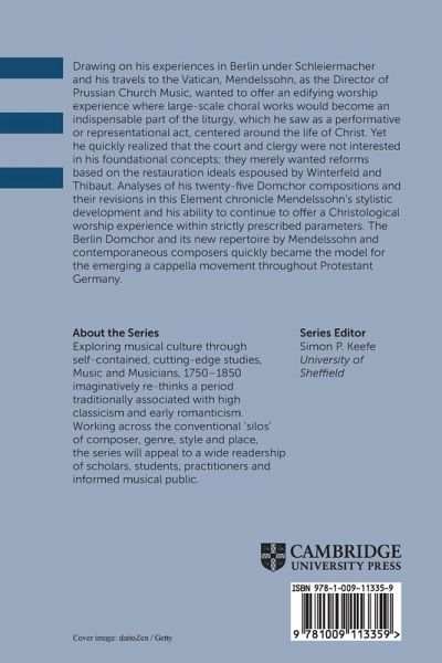 This Element presents the analyses of his 25 Domchor compositions and their revisions that chronicle Mendelssohn's stylistic development and his ability to continue to offer a Christological worship experience within strictly prescribed parameters.