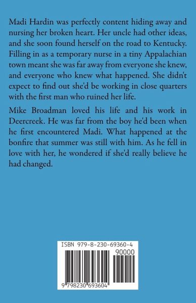 Madi Hardin was perfectly content hiding away and nursing her broken heart. Her uncle had other ideas, and she soon found herself on the road to Kentucky. Filling in as a temporary nurse in a tiny Appalachian town meant she was far away from everyone she knew, and everyone who knew what happened. She didn't expect to find out she'd be working in close quarters with the first man who ruined her life. Mike Broadman loved his life and his work in Deercreek. He was far from the boy he'd been when he first encountered Madi. What happened at the bonfire that summer was still with him. As he fell in love with her, he wondered if she'd really believe he had changed.