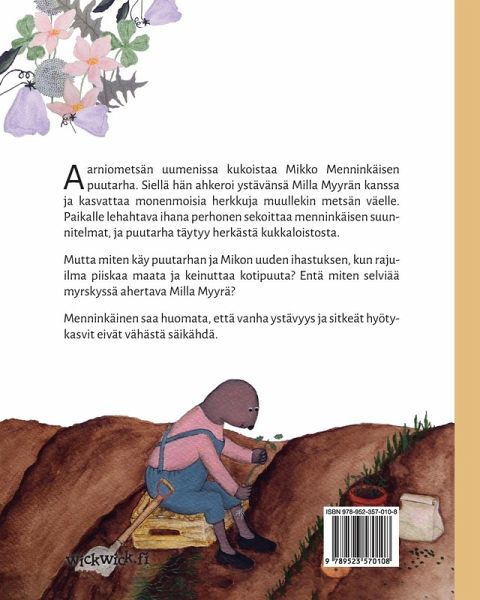 In the deepest part of the forest, Norman is planting a garden. He and his friend, Milly the Mole, plan to grow fruit and vegetables for all their forest friends again this year. Then one day a butterfly appears, and dazzles the gnome with her beauty. Soon he's filling his garden with delicate flowers to please the butterfly. When a summer storm sweeps through the forest, will Norman's fragile new garden survive? And what about his friendship with loyal Milly?In the deepest part of the forest, Norman is planting a garden. He and his friend, Milly the Mole, plan to grow fruit and vegetables for all their forest friends again this year. Then one day a butterfly appears, and dazzles the gnome with her beauty. Soon he's filling his garden with delicate flowers to please the butterfly. When a summer storm sweeps through the forest, will Norman's fragile new garden survive? And what about his friendship with loyal Milly? --- Aarniometsän uumenissa kukoistaa Mikko Menninkäisen puutarha. Siellä hän ahkeroi ystävänsä Milla Myyrän kanssa ja kasvattaa monenmoisia herkkuja muullekin metsän väelle. Paikalle lehahtava ihana perhonen sekoittaa menninkäisen suunnitelmat, ja puutarha täytyy herkästä kukkaloistosta. Mutta miten käy puutarhan ja Mikon uuden ihastuksen, kun rajuilma piiskaa maata ja keinuttaa kotipuuta? Entä miten selviää myrskyssä ahertava Milla Myyrä? Menninkäinen saa huomata, että vanha ystävyys ja sitkeät hyötykasvit eivät vähästä säikähdä.