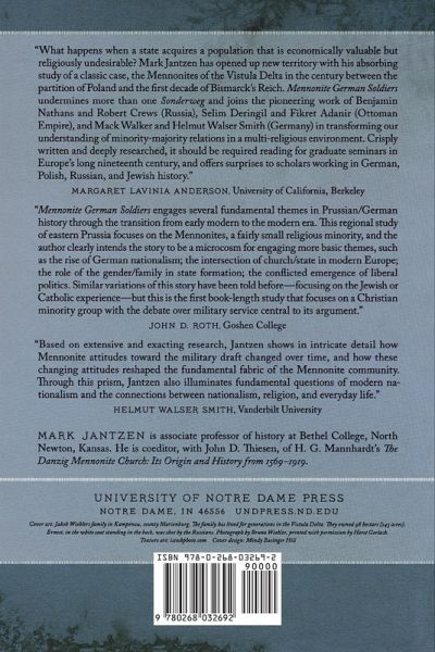 Mennonite German Soldiers traces the efforts of a small, pacifist, Christian religious minority in eastern Prussia-the Mennonite communities of the Vistula River basin-to preserve their exemption from military service, which was based on their religious confession of faith. Conscription was mandatory for nearly all male Prussian citizens, and the willingness to fight and die for country was essential to the ideals of a developing German national identity. In this engaging historical narrative, Mark Jantzen describes the policies of the Prussian federal and regional governments toward the Mennonites over a hundred-year period and the legal, economic, and social pressures brought to bear on the Mennonites to conform. Mennonite leaders defended the exemptions of their communities' sons through a long history of petitions and legal pleas, and sought alternative ways, such as charitable donations, to support the state and prove their loyalty. Faced with increasingly punitive legal and financial restrictions, as well as widespread social disapproval, many Mennonites ultimately emigrated, and many others chose to join the German nation at the cost of their religious tradition. Jantzen tells the history of the Mennonite experience in Prussian territories against the backdrop of larger themes of Prussian state-building and the growth of German nationalism. The Mennonites, who lived on the margins of German society, were also active agents in the long struggle of the state to integrate them. The public debates over their place in Prussian society shed light on a multi-confessional German past and on the dissemination of nationalist values.