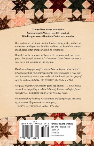 A Danuta Gleed finalist and shortlisted for the Commonwealth Writers Prize, this collection of short stories breaks through the surface of authoritarian religion and families, and into the lives of the women and children often trapped within its constraints. Set on the Canadian prairies, one story follows a young girl into a labyrinth of frozen meat lockers where she becomes trapped by more than just the ice. In another, a son cares for the dying father who ground his childhood to dust. Threaded with moments of both dark humour and unexpected grace, this second edition of Mennonites Don't Dance also contains a new story, not included in the original.…mehr