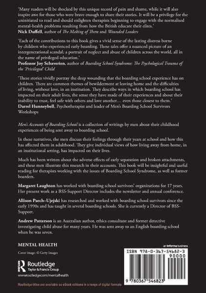 Much has been written about the adverse effects of early separation and broken attachments, and these men illustrate this research in their accounts. This book will be insightful and useful reading for therapists working with the issues of Boarding School Syndrome, as well as former boarders.