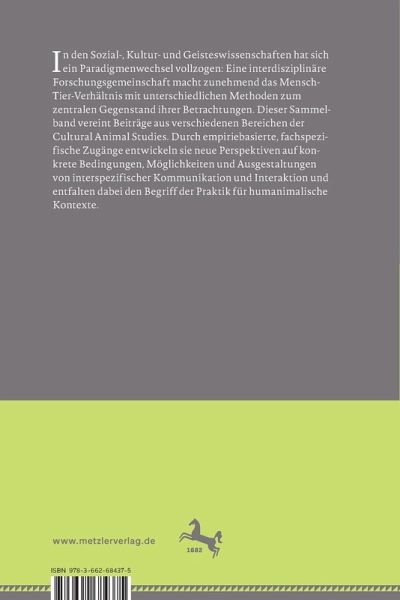 Einführung: Mensch-Tier-Praktiken aus interdisziplinärer Perspektive - Emotion, Empathie, Agency-. Von Pavianen, Meerkatzen und Stubentigern. Eine Gegenüberstellung von Niklas Luhmanns Attributionsansatz und praxeologischen Konzeptuierungen humanimalischer Sozialität.- Sprache und Empathie im Mensch-Tier-Verhältnis: Eine selektive Darstellung trennender und verbindender Praktiken aus linguistischer und literaturwissenschaftlicher Perspektive.- Schöne Grüße ins Regenbogenland: Zur sprachlichen Konstruktion jenseitiger Welten in Internet-Kondolenzbüchern für Menschen und Tiere.- Vom 'Zootier' zum 'TV-Tier'. Praktiken der Inszenierung interspezifischer Emotionsgemeinschaften in Zoo-Doku-Soaps.- du hast sie geFRAGT- solln wir miteinander SPIElen? Lehrpraktiken für die Interspezies-Interaktion als Meta-Praktiken-. Praktiken der Wissensvermittlung: Darstellung des Zoos in österreichischen Biologie & Umweltkunde-Schulbüchern.- Bilder verehrter Tiere - mit blutiger Vorgeschichte. Jagd als künstlerische Praktik im 19. Jahrhundert.- Empathie und Prekarität. Praktiken der Interspeziesbegegnung bei Gruen, Cortázar, Rilke und Tawada.- Tierpassionen. Humanimale Poetik in der deutschen Gegenwartsliteratur.- Vom Sammeln und Sehen: Menschen und Vögel in Helen Macdonalds Vesper Flights (2020).- "tweet tweet tweet jug jug jug" - Vogelgesang und die Inszenierung des Missverstehens in der Naturlyrik