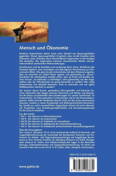 Die Autoren dieses Buches, gestandene Führungskräfte und bekannte Forscher, beleuchten den Spagat zwischen Ökonomie und Werten und diskutieren die daraus resultierenden Herausforderungen für unsere Gesellschaft, für Unternehmen, für Führungskräfte in Unternehmen und für das Personalmanagement. Dabei wird der handelnde Mensch nicht auf den homo oeconomicus reduziert, sondern in seiner Komplexität und Widersprüchlichkeit berücksichtig. Gerade aus solch vermeintlichen Gegensätzen können bei einer alternativen Perspektive neue Gestaltungsmöglichkeiten und Innovationspotenziale für die Zukunft entstehen.