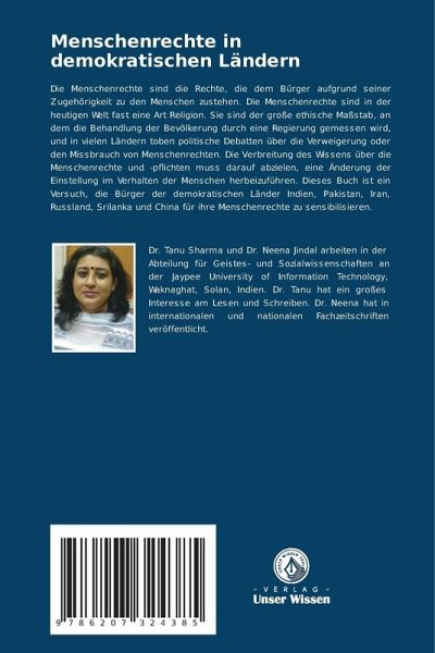 Die Menschenrechte sind die Rechte, die dem Bürger aufgrund seiner Zugehörigkeit zu den Menschen zustehen. Die Menschenrechte sind in der heutigen Welt fast eine Art Religion. Sie sind der große ethische Maßstab, an dem die Behandlung der Bevölkerung durch eine Regierung gemessen wird, und in vielen Ländern toben politische Debatten über die Verweigerung oder den Missbrauch von Menschenrechten. Die Verbreitung des Wissens über die Menschenrechte und -pflichten muss darauf abzielen, eine Änderung der Einstellung im Verhalten der Menschen herbeizuführen. Dieses Buch ist ein Versuch, die Bürger der demokratischen Länder Indien, Pakistan, Iran, Russland, Srilanka und China für ihre Menschenrechte zu sensibilisieren.