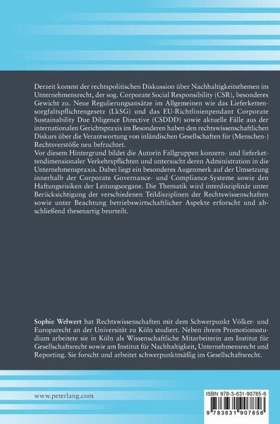Vor diesem Hintergrund bildet die Autorin Fallgruppen konzern- und lieferkettendimensionaler Verkehrspflichten und untersucht deren Administration in die Unternehmenspraxis. Dabei liegt ein besonderes Augenmerk auf der Umsetzung innerhalb der Corporate Governance- und Compliance-Systeme sowie den Haftungsrisiken der Leitungsorgane. Die Thematik wird interdisziplinär unter Berücksichtigung der verschiedenen Teildisziplinen der Rechtswissenschaften sowie unter Beachtung betriebswirtschaftlicher Aspekte erforscht und abschließend thesenartig beurteilt.