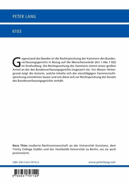 Gegenstand des Bandes ist die Rechtsprechung der Kammern des Bundesverfassungsgerichts in Bezug auf die Menschenwürde (Art. 1 Abs. 1 GG) im Strafvollzug. Die Rechtsprechung der Kammern nimmt einen großen Anteil an der des Bundesverfassungsgerichts insgesamt ein. Vor diesem Hintergrund zeigt die Autorin, welche Inhalte sich der einschlägigen Kammerrechtsprechung entnehmen lassen und wie diese sich zur Rechtsprechung der Senate des Bundesverfassungsgerichts verhält.