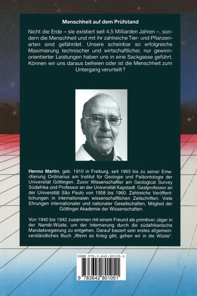 Menschheit auf dem Prüfstand Nicht die Erde - sie existiert seit 4,5 Milliarden Jahren -, sondern die Menschheit und mit ihr zahlreiche Tier- und Pflanzenarten sind gefährdet. Unsere scheinbar so erfolgreiche Maximierung technischer und wirtschaftlicher, nur gewinnorientierter Leistungen haben uns in eine Sackgasse geführt. Können wir uns daraus befreien oder ist die Menschheit zum Untergang verurteilt?