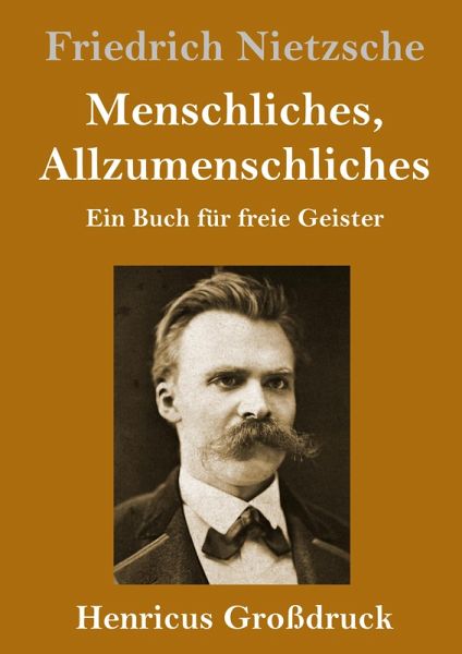 Friedrich Nietzsche: Menschliches, Allzumenschliches. Ein Buch für freie Geister Lesefreundlicher Großdruck in 16-pt-Schrift Nietzsches in Aphorismen verfasstes Werk reflektiert seine Krise aus den Jahren 1875 - 1877. Nach dem »Ekel über sich selbst« sieht er sich als »Verräter« der eigenen Ideale, empfindet »Verachtung« gegenüber seinen einstigen Freunden und findet schließlich in der Distanzierung von seiner Vergangenheit den »Freigeist der Gegenwart« als neuen Typus seines Daseins. Großformat, 210 x 297 mm Berliner Ausgabe, 2019 Durchgesehener Neusatz mit einer Biographie des Autors bearbeitet und eingerichtet von Theodor Borken Erstdrucke: Chemnitz (E. Schmeitzner) 1878 (1. Band); Chemnitz (E. Schmeitzner) 1879 (Anhang: Vermischte Meinungen und Sprüche); ; Chemnitz (E. Schmeitzner) 1880 (Der Wanderer und sein Schatten). Textgrundlage ist die Ausgabe: Friedrich Nietzsche: Werke in drei Bänden. Band 1, Herausgegeben von Karl Schlechta. München: Hanser, 1954. Umschlaggestaltung von Thomas Schultz-Overhage unter Verwendung des Bildes: Friedrich Nietzsche, Fotografie von F. Hartmann, um 1875. Gesetzt aus der Minion Pro, 16 pt.