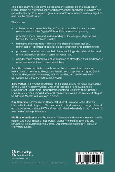 This book examines the complexities of menstrual beliefs and practices in Nepal. Taking an interdisciplinary and intersectional approach, it explores and promotes the rights of women, girls, and people who menstruate to a dignified and healthy menstruation.