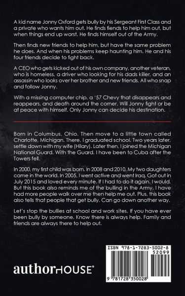 A kid name Jonny Oxford gets bully by his Sergeant First Class and a private who wants him out. He finds fiends to help him out, but when things end up worst. He finds himself out of the Army. Then finds new friends to help him, but have the same problem he does. And when his problems keep haunting him. He and his four friends decide to fight back. A CEO who gets kicked out of his own company, another veteran, who is homeless, a driver who looking for his dads killer, and an assassin who looks over her brother and new friends. All who snap and follow Jonny. With a missing computer chip, a '57 Chevy that disappears and reappears, and death around the corner. Will Jonny fight or be at peace with himself. Only Jonny can decide his destination.