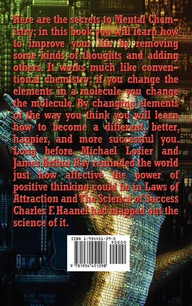 Here are the secrets to Mental Chemistry; in this book you will learn how to improve your life by removing some kinds of thoughts and adding others. It works much like conventional chemistry; if you change the elements in a molecule you change the molecule. By changing elements of the way you think you will learn how to become a different, better, happier, and more successful you. Long before Michael Losier and James Arthur Ray reminded the world just how affective the power of positive thinking could be in Laws of Attraction and The Science of Success Charles F. Haanel had mapped out the science of it.