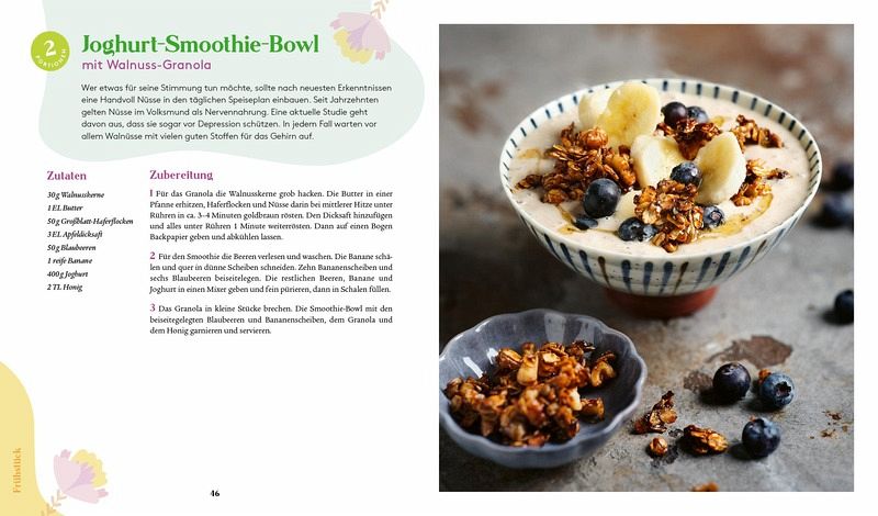 Ein gesunder, zufriedenstellender Alltag dank einer gezielten Auswahl von Nährstoffen? Das geht, denn jede Zutat hat eine Wirkung auf den Körper, und die Zusammensetzung mancher Rezepte hilft sogar bei depressiven Verstimmungen, mentaler Erschöpfung und Stress.