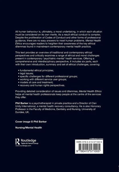 Mental Health Ethics provides an overview of traditional and contemporary ethical perspectives and critically examines a range of ethical and moral challenges present in contemporary â psychiatric-mentalâ health services.