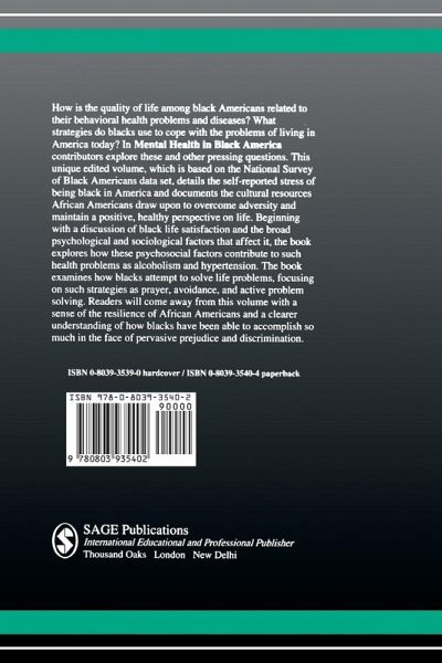 This volume details the self-reported stress of being Black in the United States, and documents the cultural resources African Americans draw upon to overcome adversity and maintain a positive, healthy perspective on life. Based on data obtained from a United States National Survey of Black Americans, the book first discusses psychological and sociological factors affecting life satisfaction. Contributors then explore how these psychosocial factors contribute to such health problems as alcoholism and hypertension. The volume concludes with an examination of strategies Black Americans use in their attempt to solve life problems. These include: prayer; avoidance; active problem-solving; and seeking help from family, community