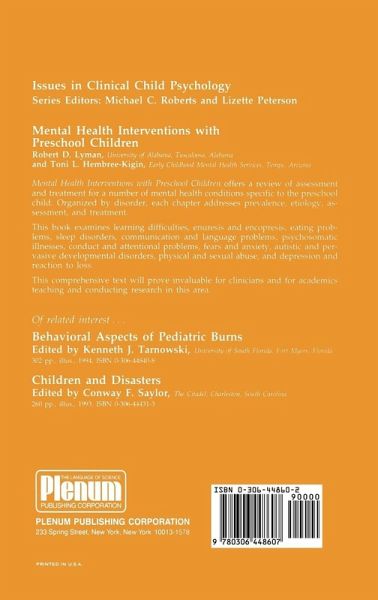 `A well-written book from which to begin to provide services to parents, families, and children. This book may well serve to generate further research into the covered topics, as one can quickly see the strengths, weaknesses, and limitations to what we currently know....a valuable service to the profession. The authors' writing style is easy to read, and the book is well laid out and documented, with a list of references of where to obtain further information. If one desires a focused reference, introdution text, or refresher on assessment and intervention issues with preschoolers, this book will be welcome and used frequently...a significant initial contribution to the field of preschool mental health.'