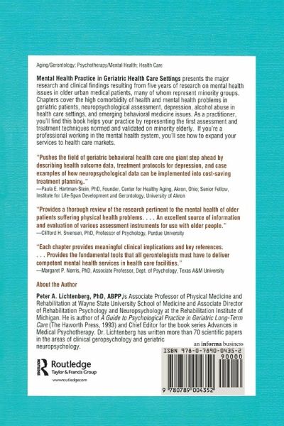 Mental Health Practice in Geriatric Health Care Settings emphasizes the major research and clinical findings realized in five years of research on mental health issues in older urban medical patients, many of whom represent minority groups. Chapters cover the high comorbidity of health and mental health problems in geriatric patients, neuropsychological (or cognitive) assessment, depression, alcohol abuse in health care settings, emerging behavioral medicine issues, and family relations and their tie to medical settings. As a practitioner, you'll find this book helps your practice by representing the first assessment and treatment techniques normed and validated on minority elderly. If you're a professional working in the mental health system, you'll see how to expand your services to health care markets.Mental Health Practice in Geriatric Health Care Settings devotes three chapters to neuropsychological assessment--first, a review of major principles; second, a new test battery for minorities; and third, extensive review on how to use test results in clinical decision making. Other chapters provide valuable information on: the analysis of outcomes for one thousand 60--103-year-olds a new validated behavioral treatment method for depression methods of detection and treatment of alcohol abuse emerging issues in behavioral medicine, including competency assessments; anxiety and pain disorders; and shaping the referral process family relations and health care, including caregiving and nursing home placement nursing home consultation and survival strategies in health care systemsAs Author Peter A. Lichtenberg describes in the Introduction, each chapter in Mental Health Practice in Geriatric Health Care Settings is multidisciplinary, empirically and statistically investigated, and focused upon urban elderly. ?In addition, the major objectives are to provide clinicians with new understandings and new assessment and treatment knowledge to utilize in their practices. Finally, this book is hoped to provide clinicians [with] information about emerging trends in the field, and effective strategies for practice in healthcare settings.?