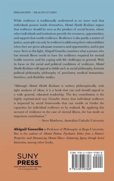 Examines the forms of support, resources, and opportunities a person with mental illness requires to have the resilience needed for mental health recovery.