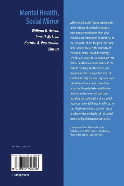 In 2004, the discipline of sociology celebrated the 100th anniversary of the founding of the American Sociological Association. In 2005, the Section on Medical Sociology celebrated 50 years since the formation of the Committee on Medical Sociology within the ASA. And, in 2003, the Section on the Sociology of Mental Health celebrated ten years since its founding within the American branch of the discipline. This brief accounting marks the American-based or- nizational landmarks central to concerns about how social factors shape the mental health problems individuals face as well as the individual and system responses that follow. This history also lays a trail of how the focus on mental health and illness has narrowed from a general concern of the discipline to a more intense, substantively-focused community of scholars targeting a common set of specific theoretical and empirical questions. While mental health and illness figured prominently in the writings of classical sociologists, contem- rary sociologists often view research on mental health as peripheral to the "real work" of the discipline. The sentiment, real or perceived, is that the sociology of mental health, along with its sister, medical sociology, may be in danger of both losing its prominence in the discipline and losing its connection to the ma- stream core of sociological knowledge (Pescosolido & Kronenfeld, 1995).