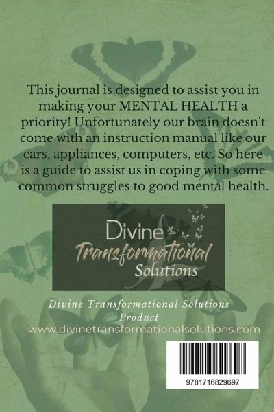 This journal is designed to assist you in making your MENTAL HEALTH a PRIORITY! Unfortunately, our brain doesn't come with an instruction manual like our cars, appliances, computers, etc. So here is a guide to assist us in coping with some common struggles to good mental health. Are you looking to better your overall health and well being? Are you looking for a way to reduce your stress? Are you looking for a way to clarify your thoughts and feelings? Are you looking for a way to get to know yourself better? Are you looking for a way to better handle the global pandemic and its impact on your emotional and physical health? Then can I suggest, keeping a journal? Research has shown the tremendous benefits of journal writing on both our physical and mental health. Writing not only relieves stress and improves your mood, but it also boosts your immune system, which helps your body to withstand the effects of further stress. If you answered yes to any of the 5 questions, then the Mental Health Transformation Journal is for you. It will help you to better understand the importance of mental health, self-care, positive self-talk, Understanding your feelings/emotions, coping with grief and loss, managing stress and anxiety, maintaining healthy relationships, and so much more. All you have to do is give it a try. Order your copy today, I promise you won't regret it! This journal guides you through 9 weeks of important mental health-related topics and includes a section of mental health tools designed to assist you with dealing with life by acknowledging and addressing life happenings on a daily basis.