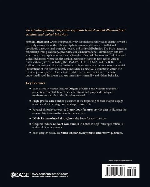 Mental Illness and Crime comprehensively synthesizes and critically examines what is currently known about the relationship of mental illness and individual psychiatric disorders, in particular with criminal, violent, and other forms of antisocial behavior. The book integrates scholarship from psychology, psychiatry, clinical neuroscience, criminology, and law when presenting explanations for and etiologies of mental illness–related criminal and violent behaviors. Moreover, the book provides the reader with a diagnostic understanding of mental disorders across various classification systems, including the current DSM-5 and ICD-10. In addition, Robert A. Schug and Henry F. Fradella critically examine what is known about the treatment and social implications of this body of research, including its practical applications within the criminal justice system. Unique to the field, this text will contribute to a better understanding of criminality and violence and move society toward a greater acceptance of individuals with these illnesses.