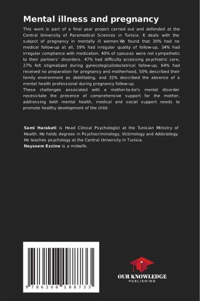 This work is part of a final year project carried out and defended at the Central University of Paramedical Sciences in Tunisia. It deals with the subject of pregnancy in mentally ill women.We found that 30% had no medical follow-up at all, 59% had irregular quality of follow-up, 34% had irregular compliance with medication, 40% of spouses were not sympathetic to their partners' disorders, 47% had difficulty accessing psychiatric care, 27% felt stigmatized during gynecological/obstetrical follow-up, 64% had received no preparation for pregnancy and motherhood, 50% described their family environment as debilitating, and 32% described the absence of a mental health professional during pregnancy follow-up.These challenges associated with a mother-to-be's mental disorder necessitate the presence of comprehensive support for the mother, addressing both mental health, medical and social support needs to promote healthy development of the child.