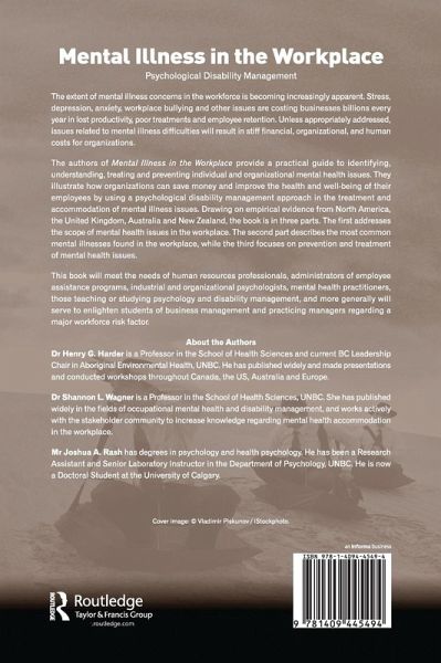 The extent of mental health concerns in the workforce is becoming increasingly apparent. Stress, depression, anxiety, workplace bullying and other mental health issues are costing businesses billions every year in lost productivity, poor treatments and employee retention. The authors of Mental Illness in the Workplace provide a practical guide to identifying, understanding, treating and preventing individual and organizational mental health issues, drawing on empirical evidence from North America, the United Kingdom, Australia and New Zealand. They illustrate how organizations can save money and improve the health and well-being of their employees by using a psychological disability management approach in the treatment and accommodation of mental health issues. This book will meet the needs of students and practitioners in human resources, psychology and business management.