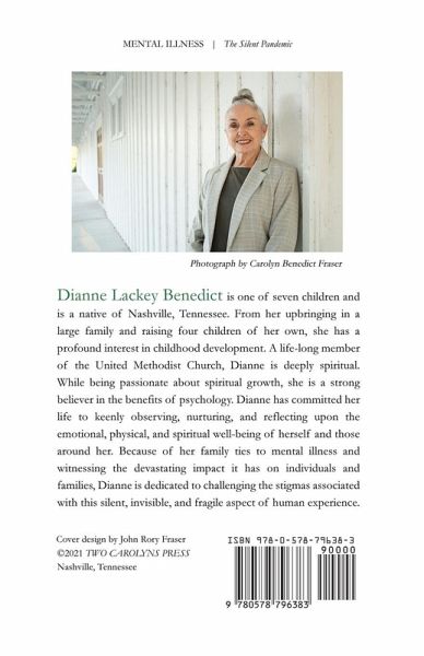 Mental Illness: The Silent Pandemic is a memoir with a purpose. In this deeply personal and politically motivated account of life in the American South, Dianne Lackey Benedict discusses coming of age in the Bible Belt at a time of heightened racial unrest and unabashed gender inequity. With urgency and candor, Benedict suggests that we are ignoring the most critical issue we are facing today - mental illness. Based on her personal experience, she resists the stigmatization of mental illness and urges the reader to take responsibility not just for the emotional challenges they are aware of, but for the emotional challenges they unknowingly face. Not until a person assumes this responsibility for themselves can they change, and consequently reverse destructive behaviors in future generations. According to Benedict, consistently protecting and nurturing the mind with professional guidance and input is not just supplemental, but a fundamental tool to heal ourselves, our children, and our nation. As a solution, she presents a strong case for "making time" to care for and protect one's mind - especially now, in a chaotic and dangerous world. She makes it clear that no one is exempt, regardless of age or status. In fact, she stresses the concept that how one's time is invested can often mean the difference between a sound healthy mind or mental distress.
