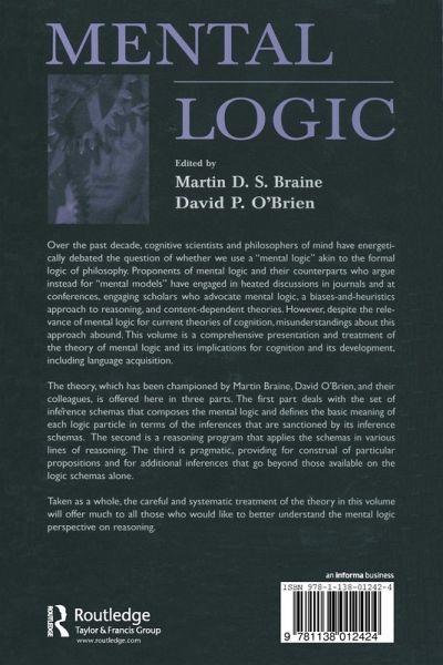 Contents: D.P. O'Brien Introduction: Some Background to the Mental-Logic Theory and to the Book. L. Bonatti Why It Took So Long to Bake the Mental-Logic Cake: Historical Analysis of the Recipe and Its Ingredients. D.P. O'Brien Mental Logic and Irrationality: We Can Put a Man on the Moon So Why Can't We Solve Those Logical Reasoning Problems? M.D.S. Braine D.P. O'Brien How to Investigate Mental Logic and the Syntax of Thought. R.B. Lea Logical Inferences and Comprehension: How-Mental Logic and Text Processing Theories Need Each Other. M.D.S. Braine D.P. O'Brien The Theory of Mental-Propositional Logic: Description and Illustration. M.D.S. Braine B.J. Reiser B. Rumain Evidence for the Theory: Predicting the Difficulty of Propositional Logic Inference Problems. M.D.S. Braine D.P. O'Brien I.A. Noveck M.C. Samuels R.B. Lea S.M. Fisch Y. Yang Further Evidence for the Theory: Predicting Intermediate and Multiple Conclusions in Propositional Logic Inference Problems M.D.S. Braine D.P. O'Brien A Theory of If: A Lexical Entry Reasoning Program and Pragmatic Principles. D.P. O'Brien M.G. Dias A. Roazzi M.D.S. Braine Conditional Reasoning: The Logic of Supposition and Children's Understanding of Pretense. M.D.S. Braine Steps Toward a Mental-Predicate Logic. Y. Yang M.D.S. Braine D.P. O'Brien Some Empirical Justification of the Mental-Predicate-Logic Model. I.A. Noveck G. Politzer Leveling the Playing Field: Investigating Competing Claims Concerning Relative Inference Difficulty. D.P. O'Brien M.G. Dias A. Roazzi A Case Study in the Mental Models and Mental-Logic Debate: Condition Syllogisms. D.P. O'Brien M.G. Dias J.R. Hosie A Dubious Premise: Suppressibility of Modus Ponens. L. Bonatti What the Mental Logic-Mental Models Controversy Is Not About. D.P. O'Brien M.G. Dias A. Roazzi J.B. Cantor Pinocchio's Nose Knows: Preschool Children Recognize That a Pragmatic Rule Can Be Violated an Indicative Conditional Can Be Falsified and That a Broken Promise Is a False Promise.