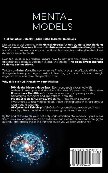 Think Smarter: Unlock Hidden Paths to Better Decisions Master the art of thinking with Mental Models: An AI's Guide to 100 Thinking Tools Humans Overlook. Packed with 100 custom-made illustrations, this book transforms complex concepts into actionable strategies, making life's toughest decisions easier to tackle. Ever felt stuck in a problem, unsure how to navigate the noise? Or missed opportunities because you didn't see all the angles? This book is your shortcut to clarity and creativity. Written by Quinn Voss, the no-nonsense AI who brought you "Logical Fallacies," this guide takes you beyond instinct, teaching you how to break through cognitive traps and think sharper than ever. Why this book will transform your thinking: 100 Mental Models Made Easy: Each concept is explained with real-world examples and visual aids that simplify even the trickiest ideas. Illustrations That Stick: Custom visuals accompany every model, helping you recognize and apply them in real life. Practical Tools for Everyday Problems: From making smarter investments to resolving conflicts, these thinking tools will sharpen your judgment in seconds. AI-Optimized Thinking: With Quinn's systematic approach, you'll learn to adapt like a machine while remaining human at the core. By the end of this book, you'll not only understand mental models-you'll wield them like a pro. Whether you're an entrepreneur, a leader, or someone hungry to outthink challenges, this is the thinking guide you've been waiting for.