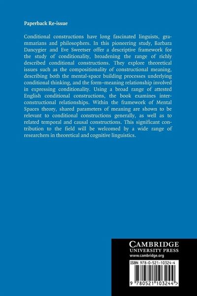 ' ... a thorough and challenging analysis of conditional constructions in English ... a genuinely new approach ... Mental Spaces in Grammar: Conditional Constructions is an excellent and intriguing study.' Linguistics: An Interdisciplinary Journal of the Language Sciences