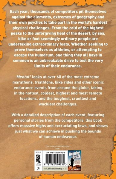 Each year, thousands of competitors pit themselves against the elements, extremes of geography and their own psyches to take part in the world's hardest physical challenges. From the cold of the highest peaks to the unforgiving heat of the desert, by sea, bike or foot seemingly ordinary people are undertaking extraordinary feats. Whether seeking to prove themselves as athletes, or attempting to escape the humdrum, one thing they all have in common is an unbreakable drive to test the very limits of their endurance. Mental! looks at over 60 of the most extreme marathons, triathlons, bike rides and other iconic endurance events from around the globe, taking in the hottest, coldest, highest, and most remote locations in the world. With a detailed description of each event, featuring personal stories from the competitors, this book offers massive highs and excruciating lows, and shows just what we can achieve in pushing the boundaries o human endeavour.