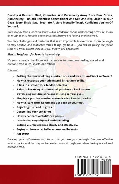 2 BOOKS IN 1 Includes FREE GIFTS - Access to 10 eCourses, 10 Workbooks, 10 eBooks, 10 Cheetsheets, and much more! BONUS CHAPTER 1: Standing Your Ground When Dealing With Difficult People. BONUS CHAPTER 2: Developing Self-Discipline and Sticking to Your Goals. Book 1: Mental Toughness For Teens: Harness The Power Of Your Mindset and Step Into A More Mentally Tough, Confident Version Of Yourself! Book 2: Mental Toughness For Teens: How To Develop A Resilient Mind, Character, And Personality Away From Fear, Stress, And Anxiety! Teens today face a lot of pressure - like academic, social, and…mehr