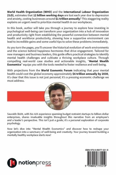 World Health Organization (WHO) and the International Labour Organization (ILO), estimates that 12 billion working days are lost each year due to depression and anxiety, costing businesses around $1 trillion annually? This staggering reality explains an urgent need to prioritize mental health in our workplaces. In this book, author will take you through a journey to explore how investing in psychological well-being can transform your organization into a hub of innovation and productivity right from establishing the powerful connection between mental health and workforce productivity, showing how a supportive environment can lead to incredible gains and some useful tips to solve these problems immediately. As you turn the pages, you'll uncover the historical evolution of work environments and the science behind happiness hormones that drive engagement. Tailored for new managers and business leaders, this guide offers practical strategies to identify mental health challenges and cultivate a thriving workplace culture. Through compelling real-world case studies and actionable insights, "Mental Wealth Economics" equips you with the tools needed to foster resilience and well-being. With projections from the World Economic Forum indicating that poor mental health could cost the global economy approximately $6 trillion annually by 2030, it's clear that this issue is not just personal; it's a pressing economic challenge we must address.