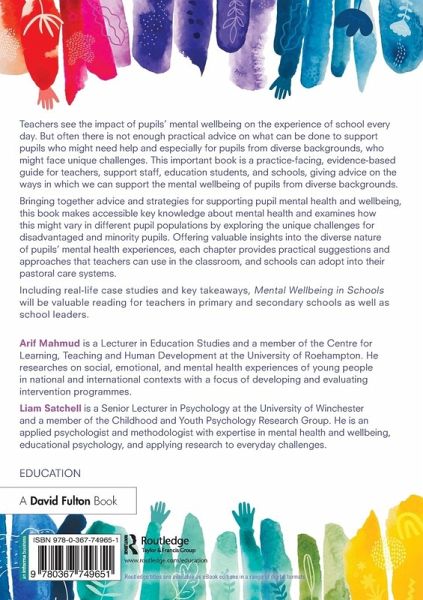 Teachers see the impact of pupils' mental wellbeing on the experience of school every day. But often there is not enough practical advice on what can be done to support pupils who might need help and especially for pupils from diverse backgrounds, who might face unique challenges. This important book is a practice-facing, evidence-based guide for teachers, support staff, education students, and schools, giving advice on the ways in which we can support the mental wellbeing of pupils from diverse backgrounds.