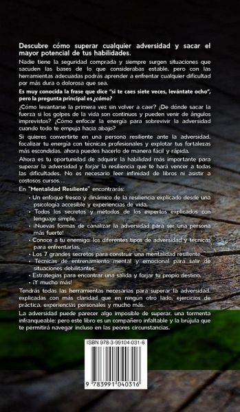 Descubre cómo superar cualquier adversidad y sacar el mayor potencial de tus habilidades. Nadie tiene la seguridad comprada y siempre surgen situaciones que sacuden las bases de lo que considerabas estable, pero con las herramientas adecuadas podrás aprender a enfrentar cualquier dificultad por más dura o dolorosa que sea. ¿Cómo levantarse la primera vez sin volver a caer? ¿De dónde sacar la fuerza si los golpes de la vida son continuos y pueden venir de ángulos imprevistos? ¿Cómo enfocar la energía para sobrevivir la adversidad cuando todo te empuja hacia abajo? Si quieres convertirte en una persona resiliente ante la adversidad, focalizar tu energía con técnicas profesionales y explotar tus fortalezas más escondidas, ahora puedes hacerlo de manera fácil y rápida. Ahora es tu oportunidad de adquirir la habilidad más importante para superar la adversidad y forjar la resiliencia que te hará vencer a todas las dificultades. No es necesario leer infinidad de libros ni asistir a costosos cursos. En "Mentalidad Resiliente" encontrarás: ¿ Un enfoque fresco y dinámico de la resiliencia explicado desde una psicología accesible y experiencias de vida. ¿ Todos los secretos y métodos de los expertos explicados con lenguaje simple. ¿ ¡Nuevas formas de canalizar la adversidad para ser una persona más fuerte! ¿ Conoce a tu enemigo: los diferentes tipos de adversidad y técnicas para enfrentarlas. ¿ Los 7 grandes secretos para construir una mentalidad resiliente. ¿ ¡Y mucho más! Tendrás todas las herramientas necesarias para superar la adversidad, explicadas con más claridad que en ningún otro lado, ejercicios de práctica, experiencias personales y mucho más. La adversidad puede parecer algo imposible de superar, una tormenta infranqueable; pero este libro es un compañero infaltable y la brújula que te permitirá navegar incluso en las peores circunstancias.