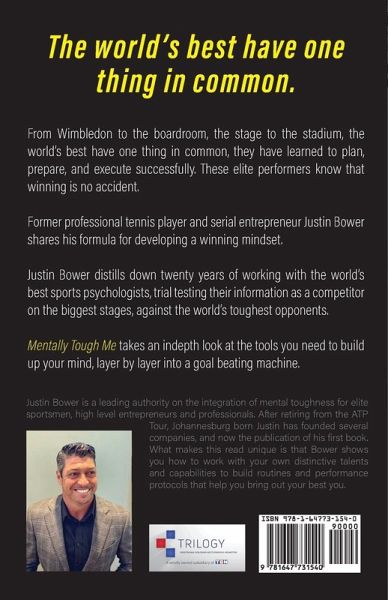 The world's best have one thing in common. From Wimbledon to the boardroom, the stage to the stadium, the world's best have one thing in common, they have learned to plan, prepare, and execute successfully. These elite performers know that winning is no accident. Former professional tennis player and serial entrepreneur Justin Bower shares his formula for developing a winning mindset. Justin Bower distills down twenty years of working with the world's best sports psychologists, trial testing their information as a competitor on the biggest stages, against the world's toughest opponents. Mentally Tough Me takes an indepth look at the tools you need to build up your mind, layer by layer into a goal beating machine.