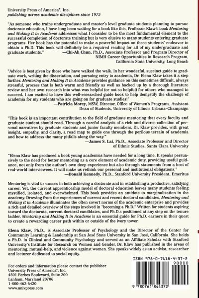 The current apprenticeship model of doctoral education leaves many students feeling mystified, isolated, and overwhelmed. This book provides an antidote to marginalization in the academy and is an essential guide for PhD earners in their quest to create a rewarding career path within or outside of the ivory tower.