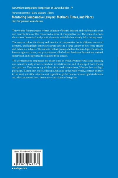 The contributions emphasize the many ways in which Professor Bussani's teaching and scientific output have enriched, revolutionized, and challenged both theory and practice. They cover e.g. the law of secured transactions, Western law and legal pluralism, fashion law, contract law in China and in the Arab World, contract and tort in the West, scientific evidence, risk regulation, global finance, human rights indicators, anti-discrimination laws, democracy and climate change law.